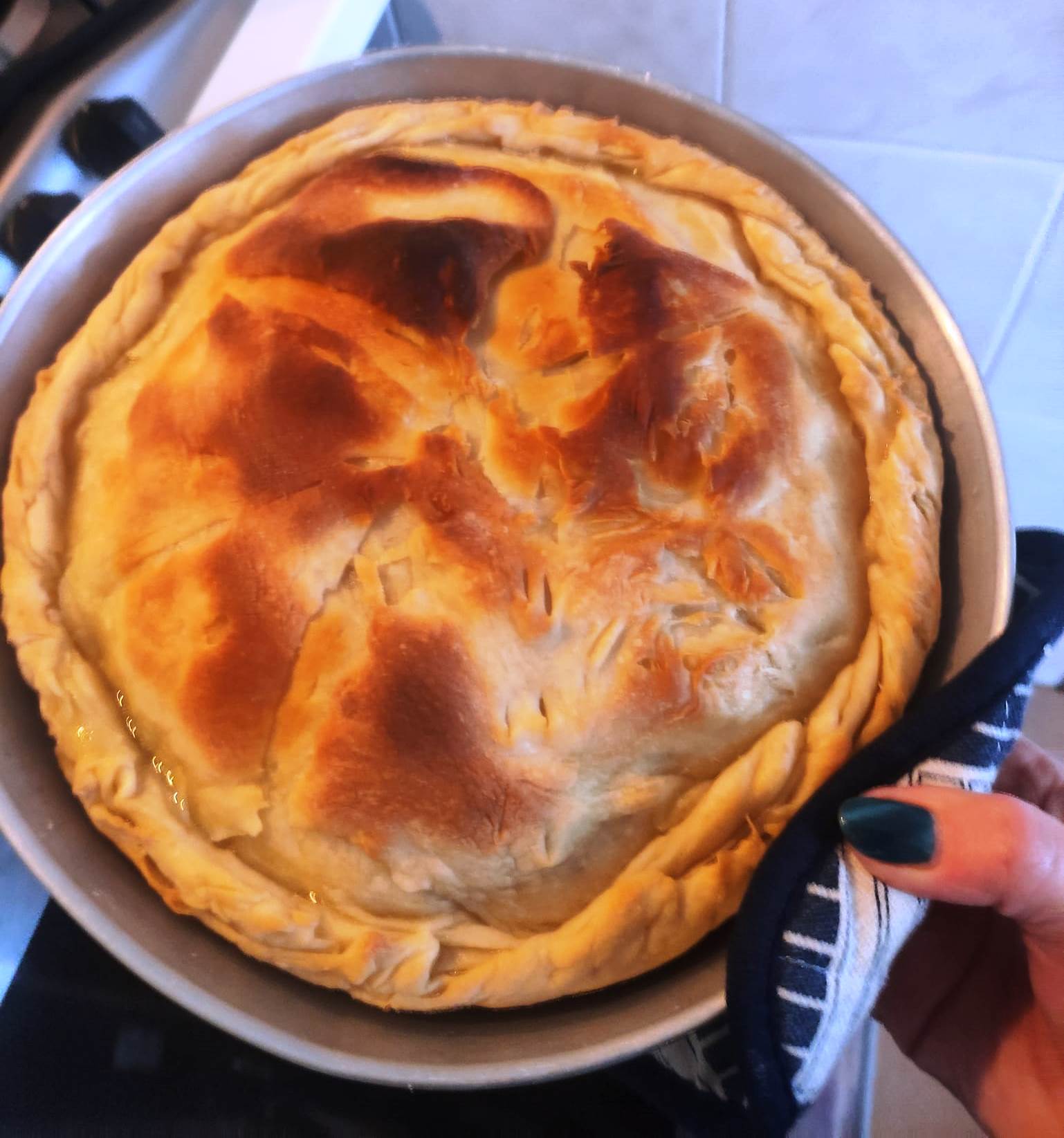 Ανοίγουμε το δεύτερο φύλλο που είναι λιγο μεγαλυτερο κλείνουμε την πίτα και σχηματιζουμε τον κοθο, αλείφουμε με έξτρα παρθένο ελαιόλαδο και ψήνουμε στους 200° μέχρι να ροδίσουν περίπου 20 25 λεπτά