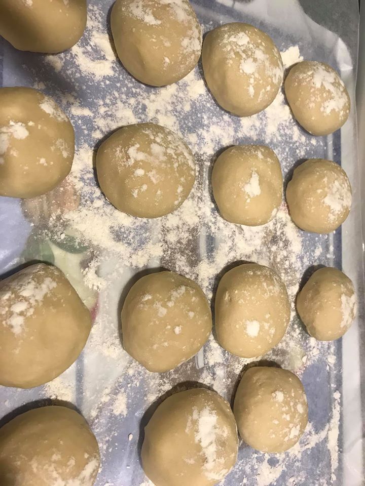 Το χωρίζουμε σε 20 μπαλάκια και το αφήνουμε να ξεκουραστεί 30 λεπτά