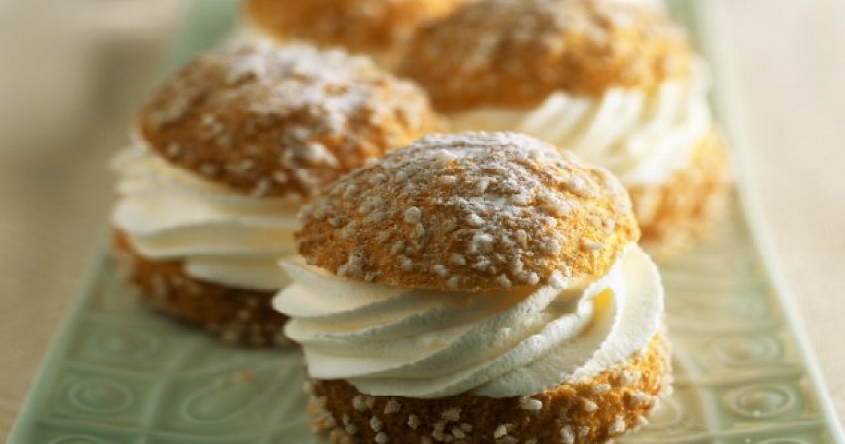 Τοποθετείτε την κρέμα γιαουρτιού σε ένα κορνέ ζαχαροπλαστικής και γεμίζετε με αυτήν ένα -ένα τα σου, αφού προηγουμένως τα κόψετε στη μέση. Σκεπάζετε με τα καπάκια από τα σου. Πασπαλίζετε με λίγη ζάχαρη άχνη.