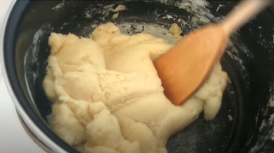 Προσθέστε το αλεύρι, ανακατέψτε μέχρι να γίνει ομοιόμορφο το μείγμα σαν ζύμη.