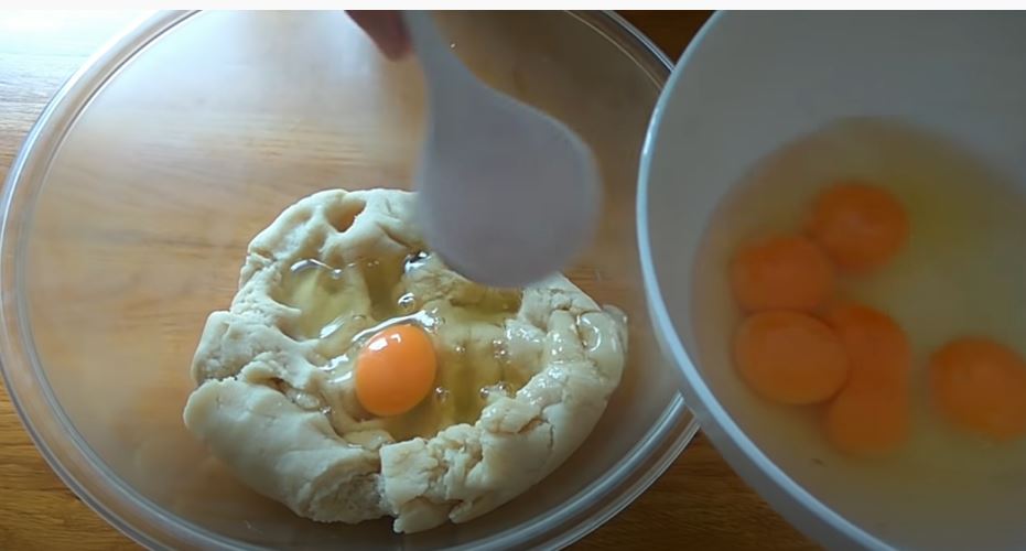 Προσθέστε τα αυγά στο κρύο μείγμα, ένα προς ένα και ανακατέψτε με ένα μίξερ.