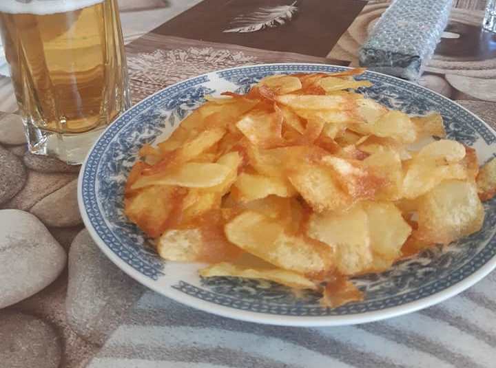 Καθαρίζουμε και κόβουμε τις πατάτες σε φέτες πάχους 2-3 χιλ. περίπου.