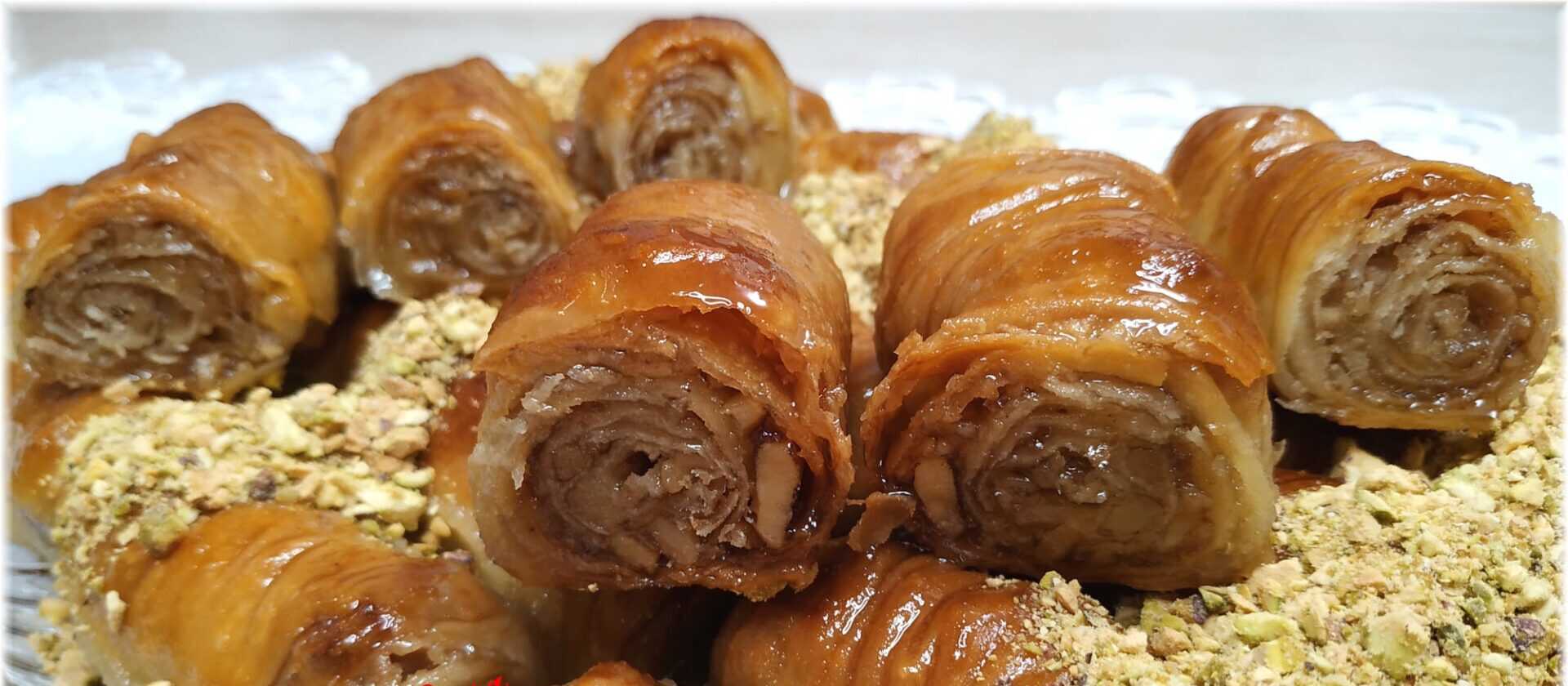 Αλείφουμε με βούτυρο (250 γρ) απλώνουμε τη γέμιση να καλύψει περίπου το μισό φύλλο και στη συνέχεια τυλίγουμε με την βοήθεια ενός πλάστη, τα σουρώνουμε στις δύο άκρες προς το κέντρο και το αφαιρούμε τον πλάστη.