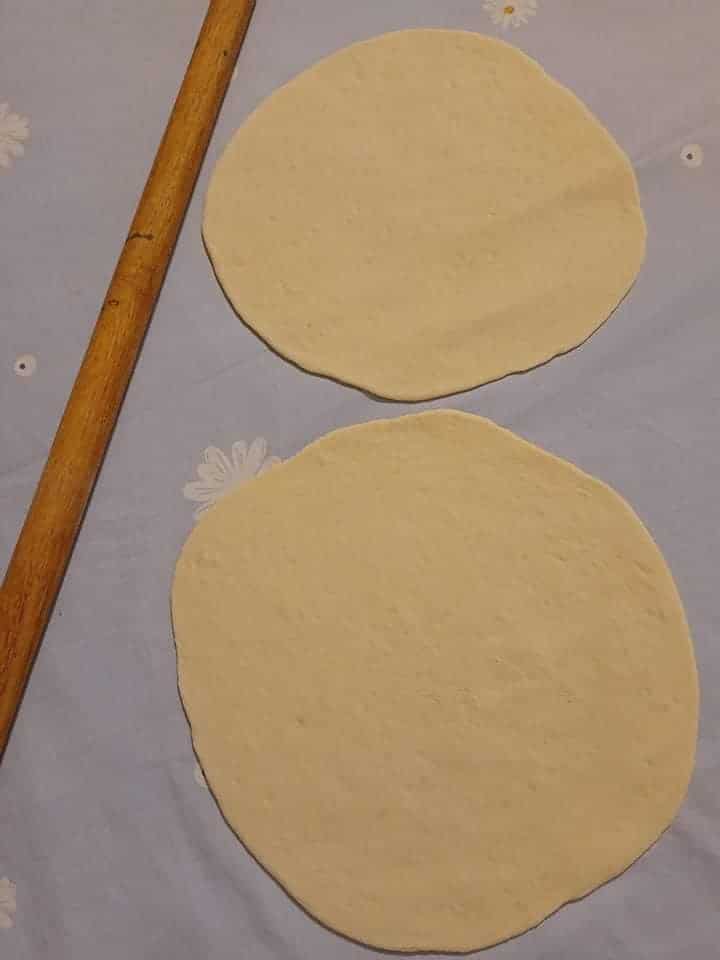 Πλάστε κάθε μέρος σε μια μπαλα και στη συνέχεια ανοίξτε το με ένα πλάστη σε ένα φύλλο.
