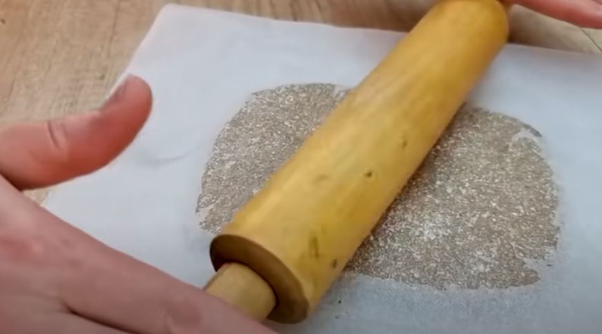 Τη βάλαμε μεταξύ από δυό λαδόκολλες και με ένα πλάστη την ανοίξαμε την τετράγωνη μορφή.