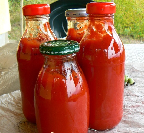 Οι ντομάτες αλέθονται, βάζουμε σε βαθύ τηγάνι σε χαμηλή φωτιά, προσθέτουμε αλάτι και ζάχαρη και στη συνέχεια βράζουμε τα μπαχαρικά, ανακατεύοντας συνεχώς, όταν αρχίσει να πήζει, προσθέτουμε το κορν φλαουρ ανακατεμένο σε μια κουταλιά της σούπας νερό. Μαγειρεύουμε για άλλα 5 λεπτά. Ανακατεύοντας συνεχώς, αφαιρέστε από τη φωτιά και περιμένετε να κρυώσει εντελώς βάλτε την σε βάζα ή μπουκάλια κλείστε και βράστε τα βάζα για 10 λεπτά.