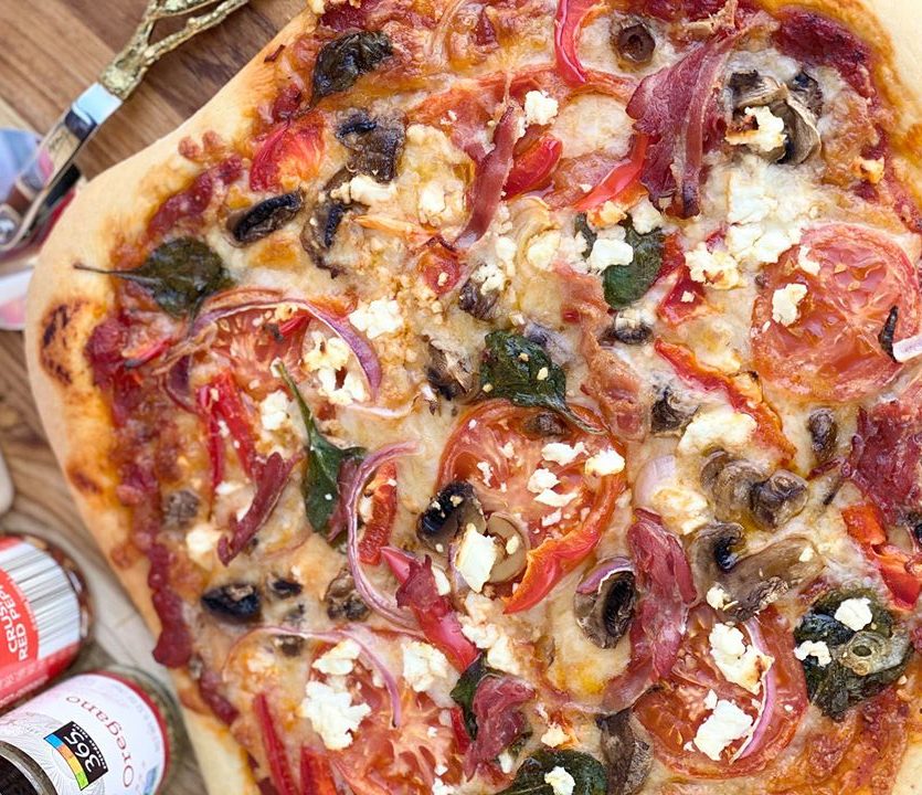 Συμβουλή: Ραντίστε ελαιόλαδο πάνω από πίτσα μόλις βάλετα όλα τα πρόσθετα. Αυτό βοηθά στην υγρασία της γαρνιτούρας. Σερβίρετε σκόνη σκόρδου, ρίγανη, παρμεζάνα και κόκκινες νιφάδες τσίλι με την πίτσα σας. Έτσι σερβίρουμε πίτσα στην Κάρπαθο.