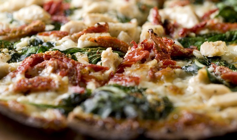 Απλώνω τη σάλτσα ντομάτας, τα υπόλοιπα υλικά και καλύπτω με την μοτσαρέλα. Ψήνω σε προθερμασμένο φούρνο στους 180 βαθμούς μέχρι να ροδίσει η επιφάνειά της και να ψηθεί η κάτω πλευρά της.