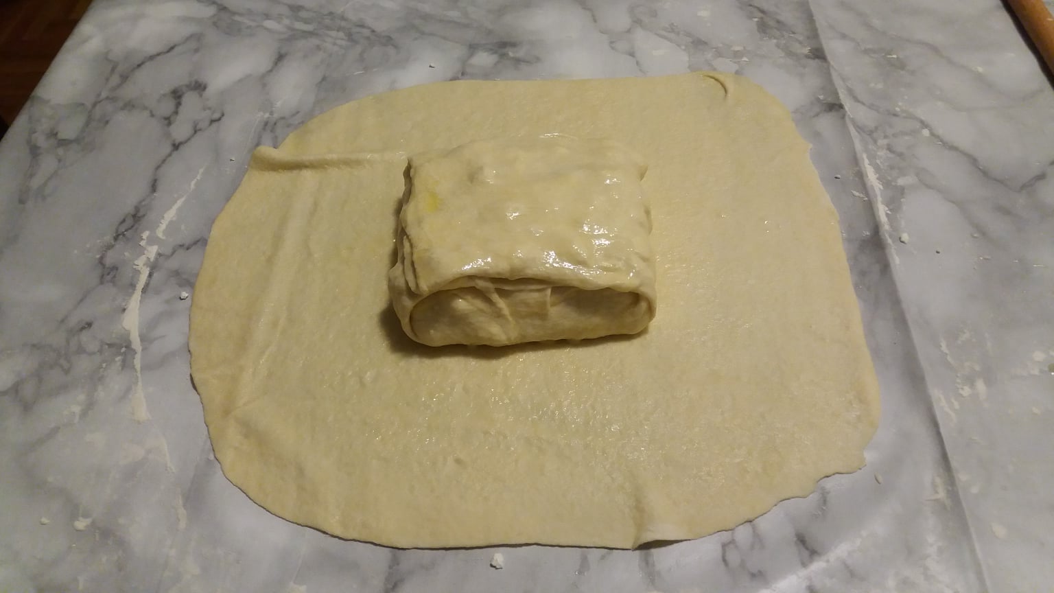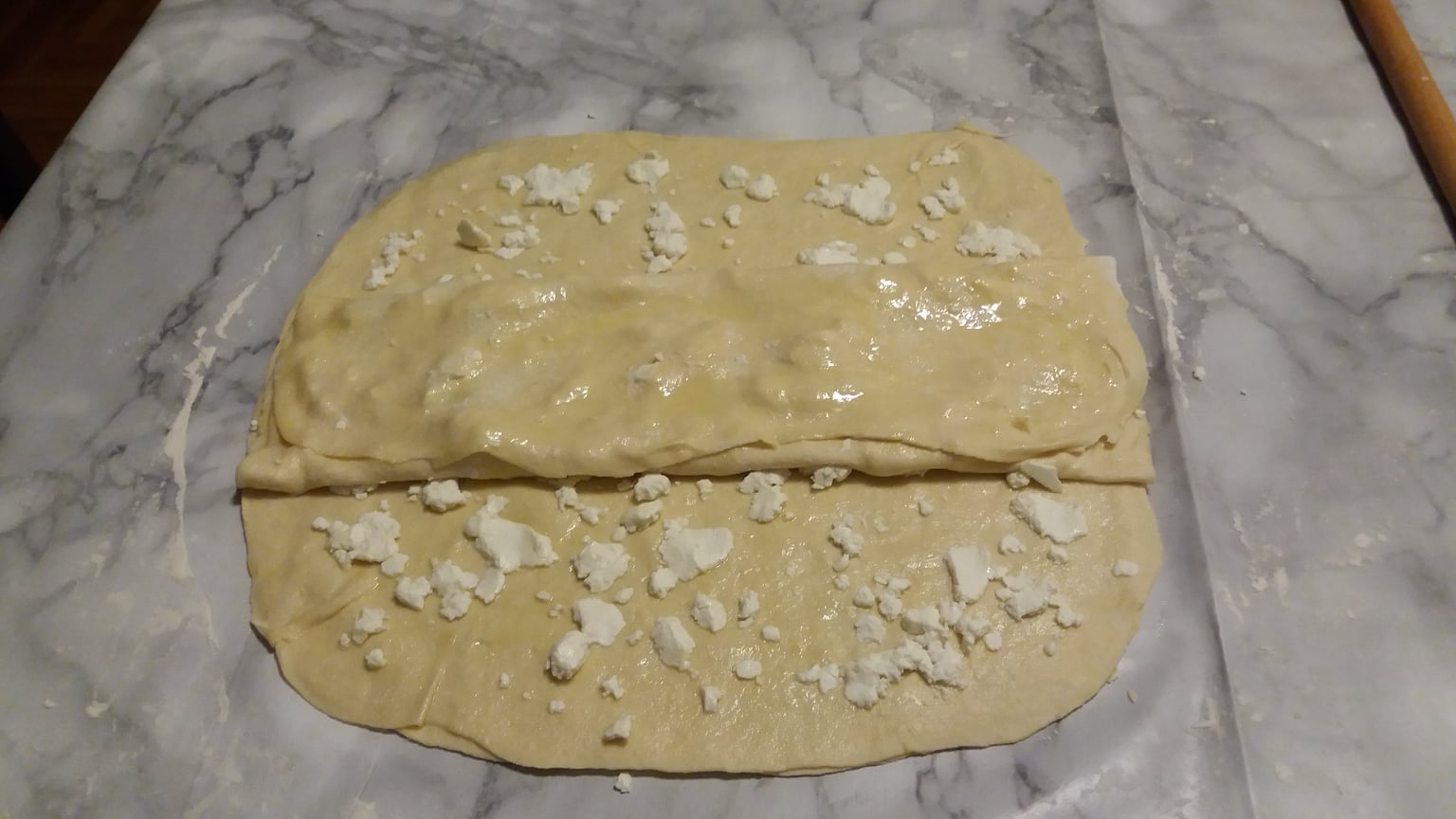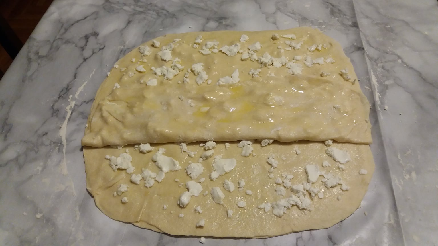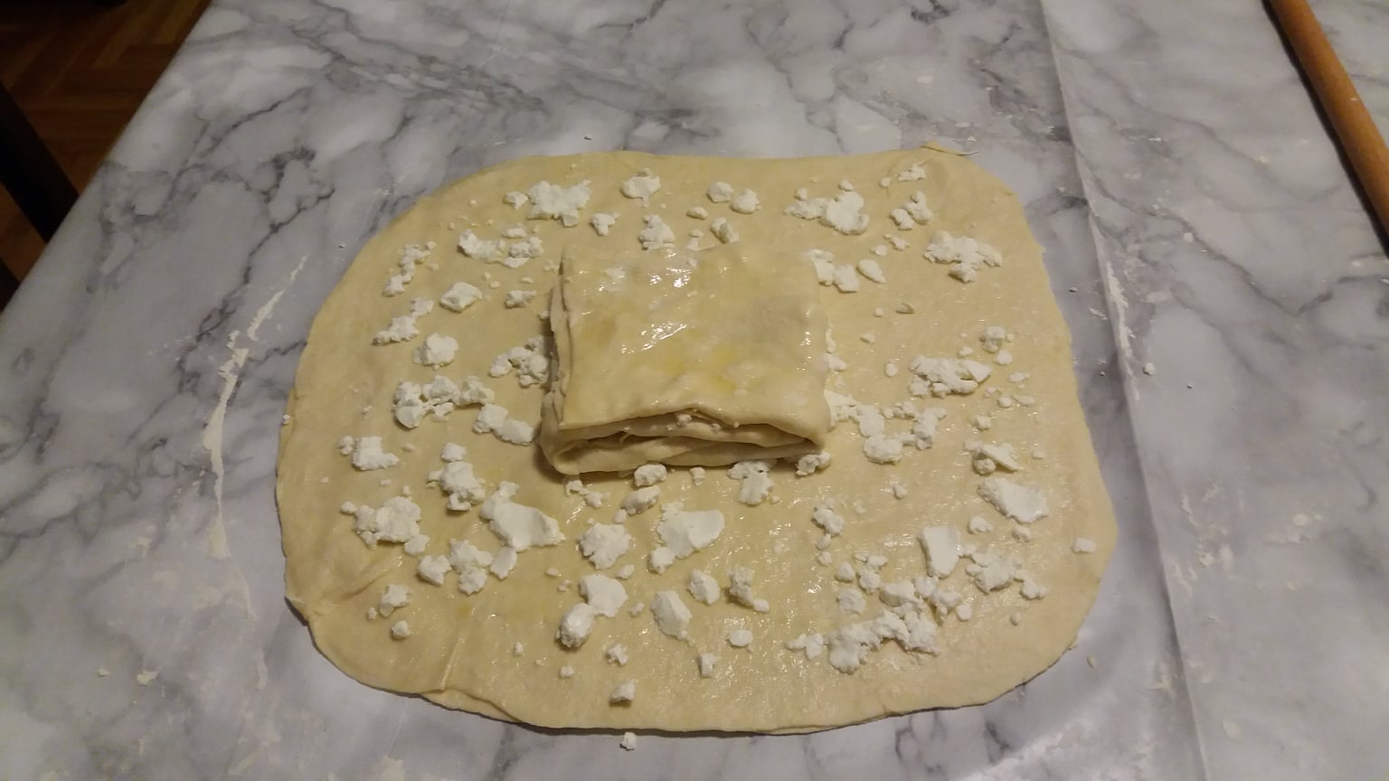 Το επόμενο φύλλο που είναι από κάτω διπλώνεται πάνω από την ήδη διπλωμένη κρούστα με τον ίδιο τρόπο που περιγράφεται.