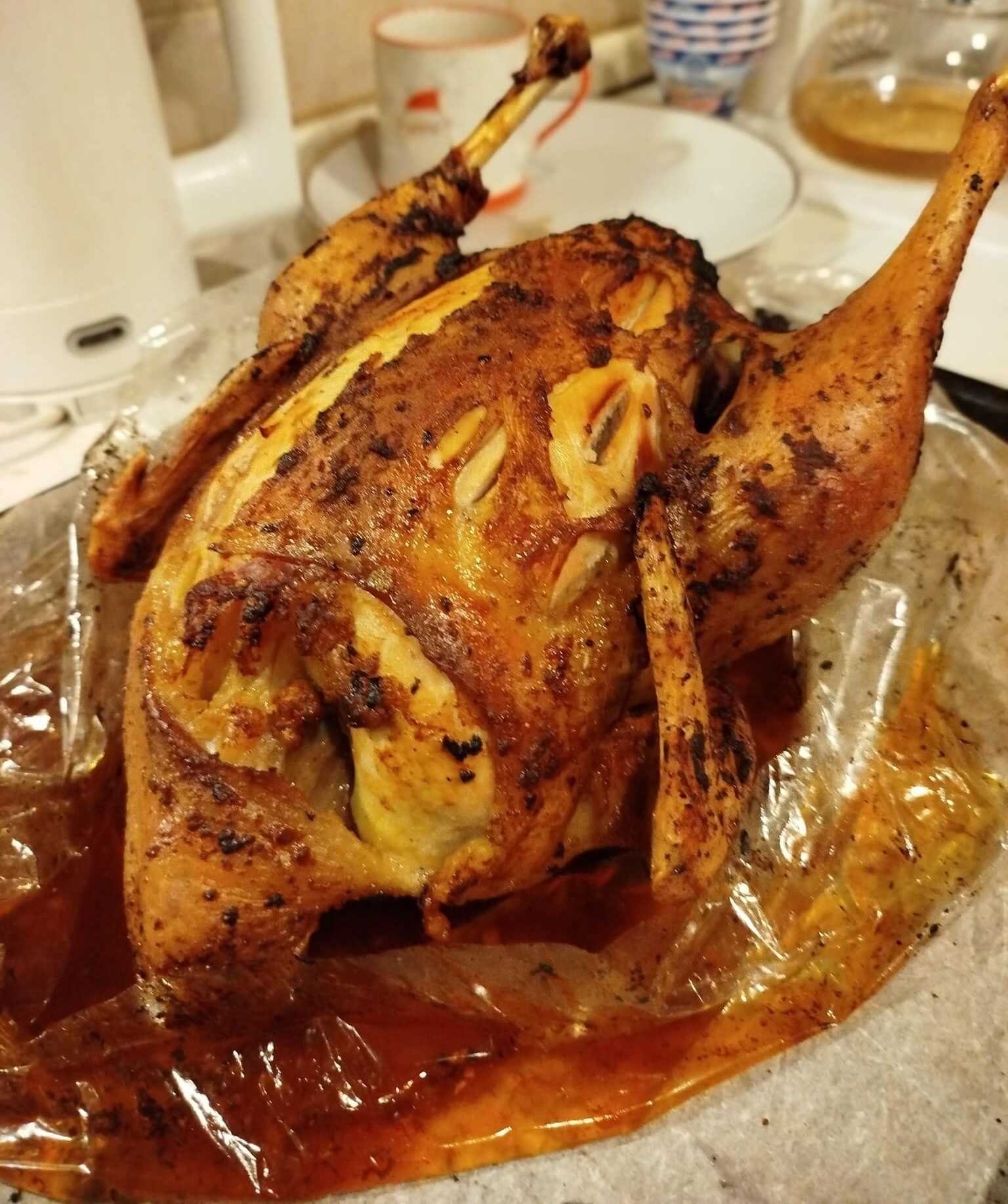 Αλείφουμε καλά το κοτόπουλο τόσο εξωτερικά όσο και εσωτερικά με το μείγμα μαρινάδας.