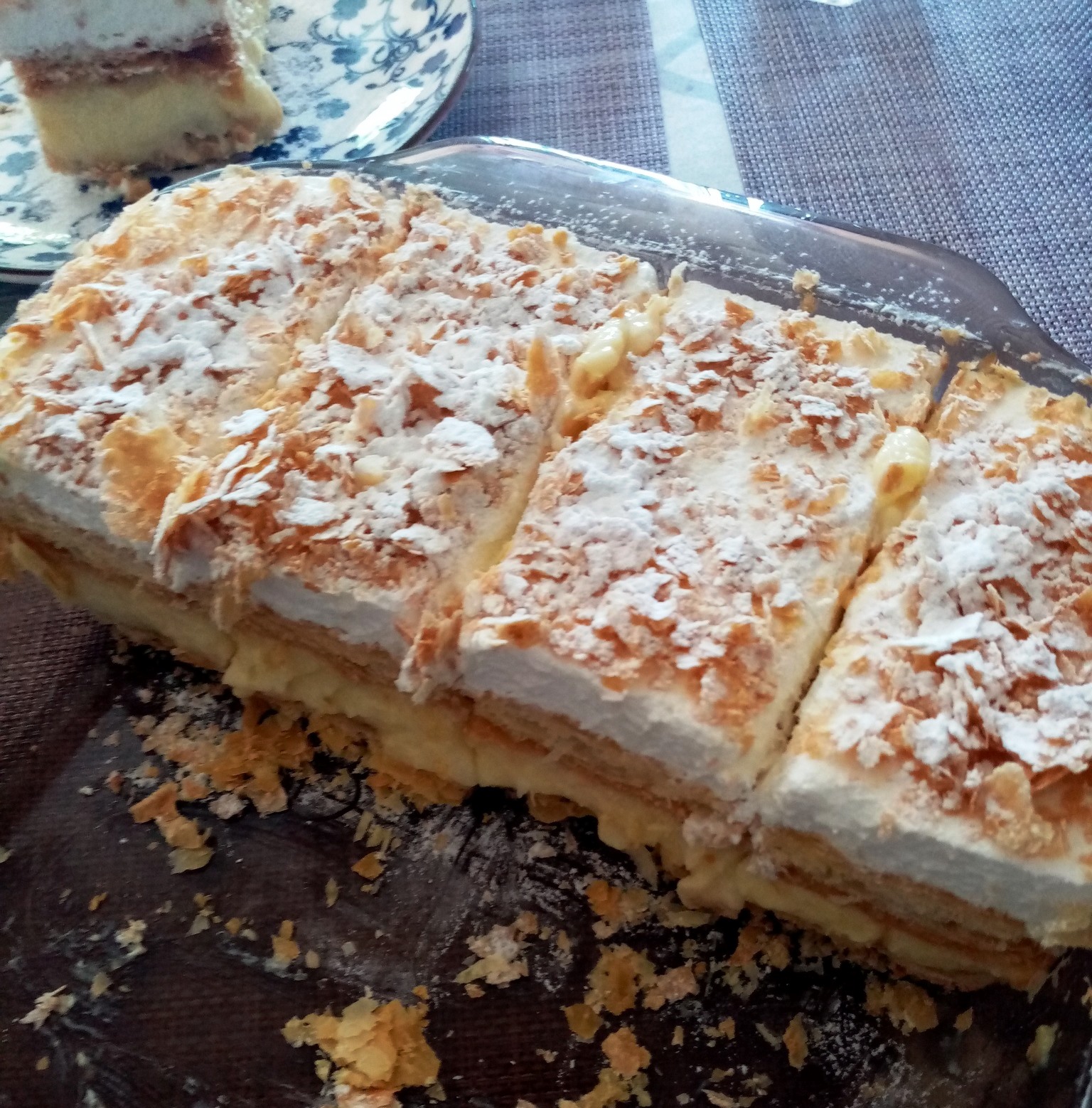 Απλώστε τη σαντιγί πάνω από το μιλφέιγ.