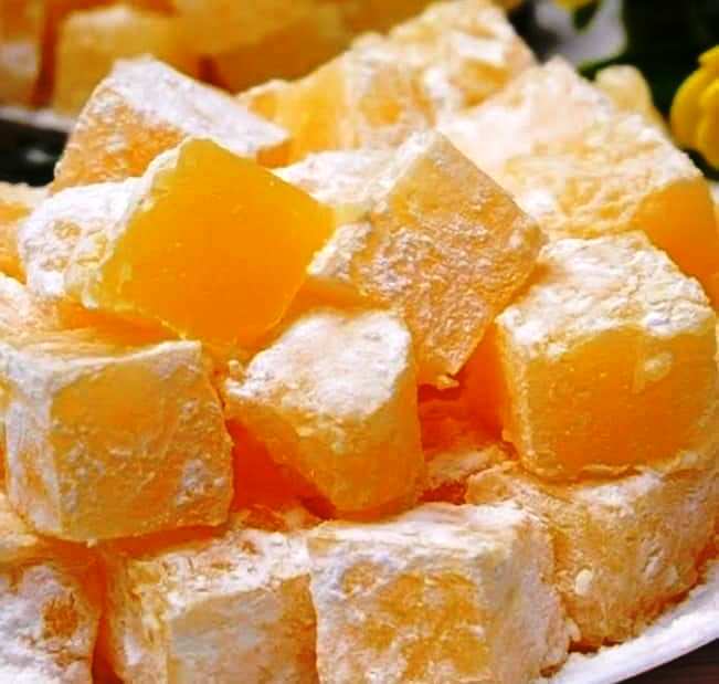 Βάλτε αυτό το μείγμα σε ένα πιάτο και τοποθετήστε τα κομμάτια από το λουκούμι να καλυφθούν
