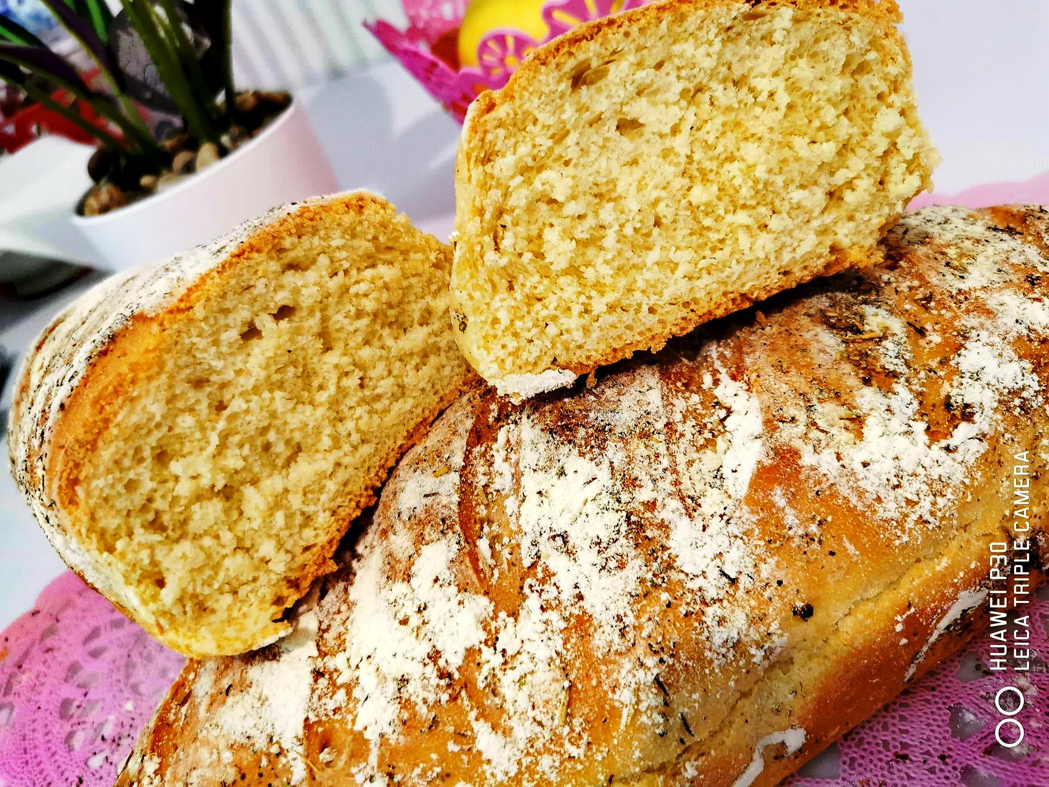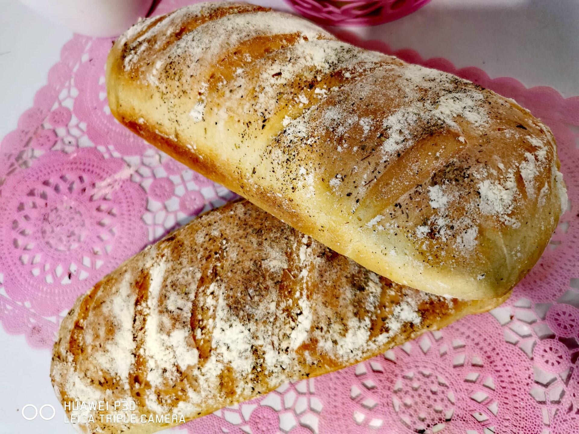Μετέφερα τη ζύμη από χέρι σε χέρι, έτσι έγινε πιο απαλή και ελαστική. Το έβαζαν σε ένα μπολ, το άλειψα με λάδι και το σκέπασα με αλουμινόχαρτο και από πάνω μια πετσέτα. Το αφήνω να φουσκώσει στη ζέστη. Στη συνέχεια το χώρισα σε 2 μέρη, τα έπλασα, τα άλειψα με λάδι από πάνω, έκανα τομές με ένα μαχαίρι, πασπαλίσαμε με μπαχαρικό της Προβηγκίας και πασπαλίσαμε με αλεύρι, τα έβαλα στο ταψί προστρωμένο με χαρτί και τα άφησα μέσα φούρνο να φουσκώσει για άλλα 20 λεπτά.