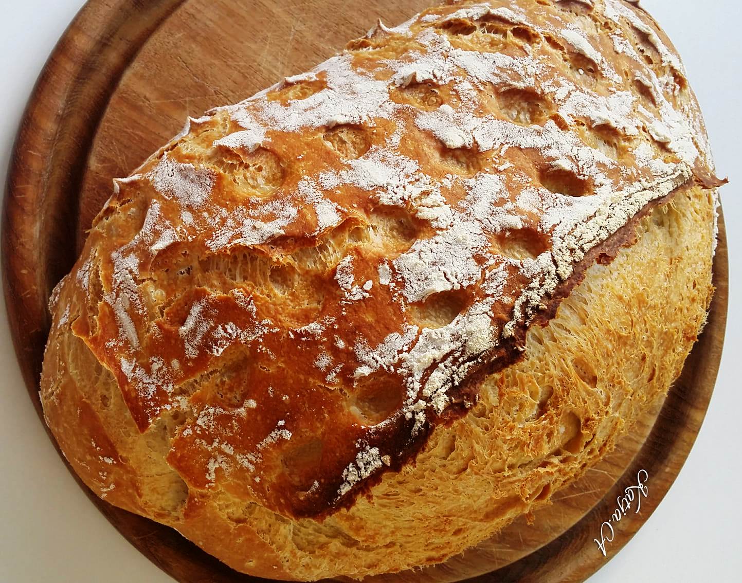 Πασπαλίζουμε το ψωμί με αλεύρι και κάνουμε μερικά κοψίματα.