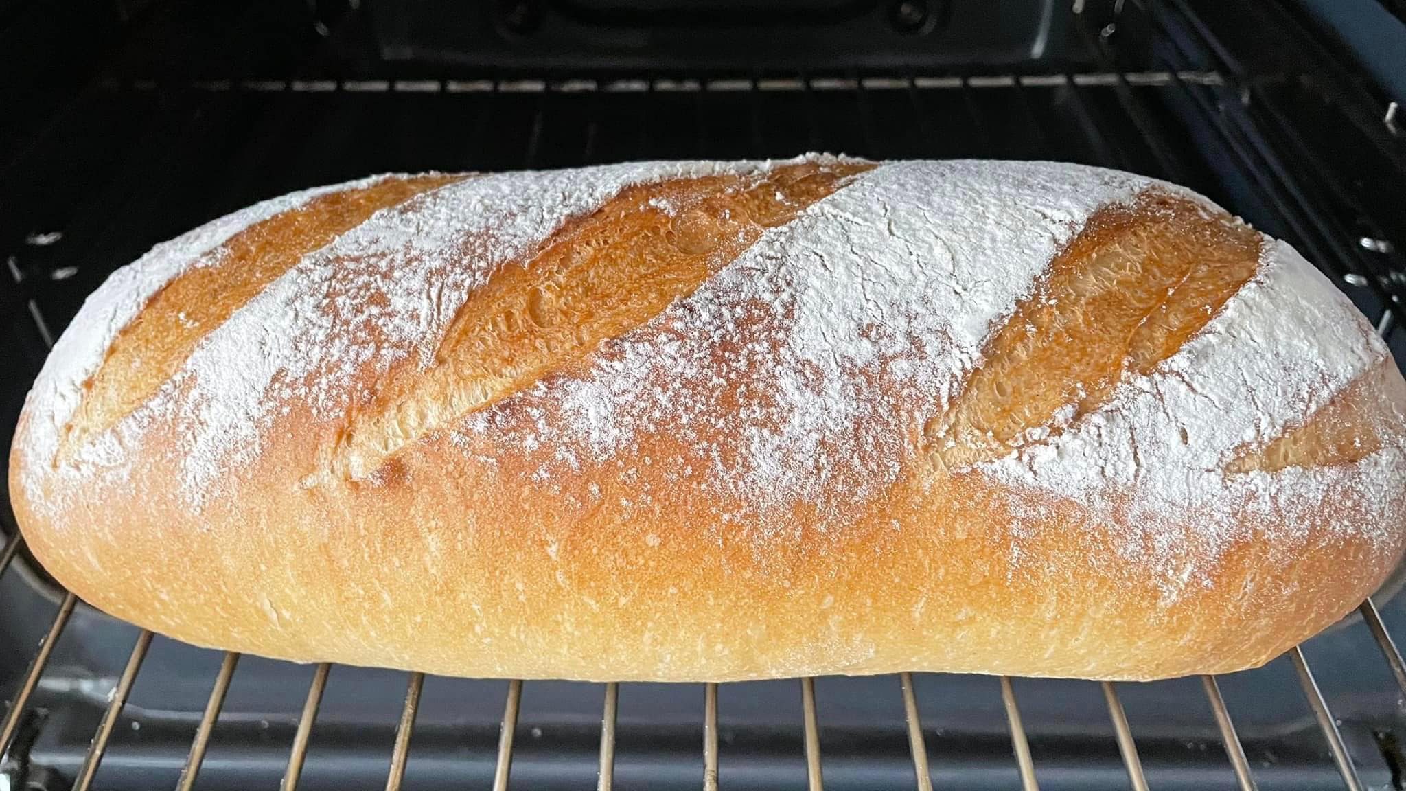 Αυτή η μερίδα ζύμης δίνει ένα καρβέλι 500 γρ. η φωτογραφία δείχνει μια διπλή μερίδα, ένα καρβέλι και δύο μικρά καρβέλια ψωμί.