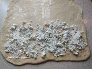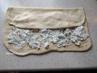 Στη συνέχεια το μέρος του φύλλου που εχει το τυρι διπλώνετε πάνω απο το προηγουμενο.