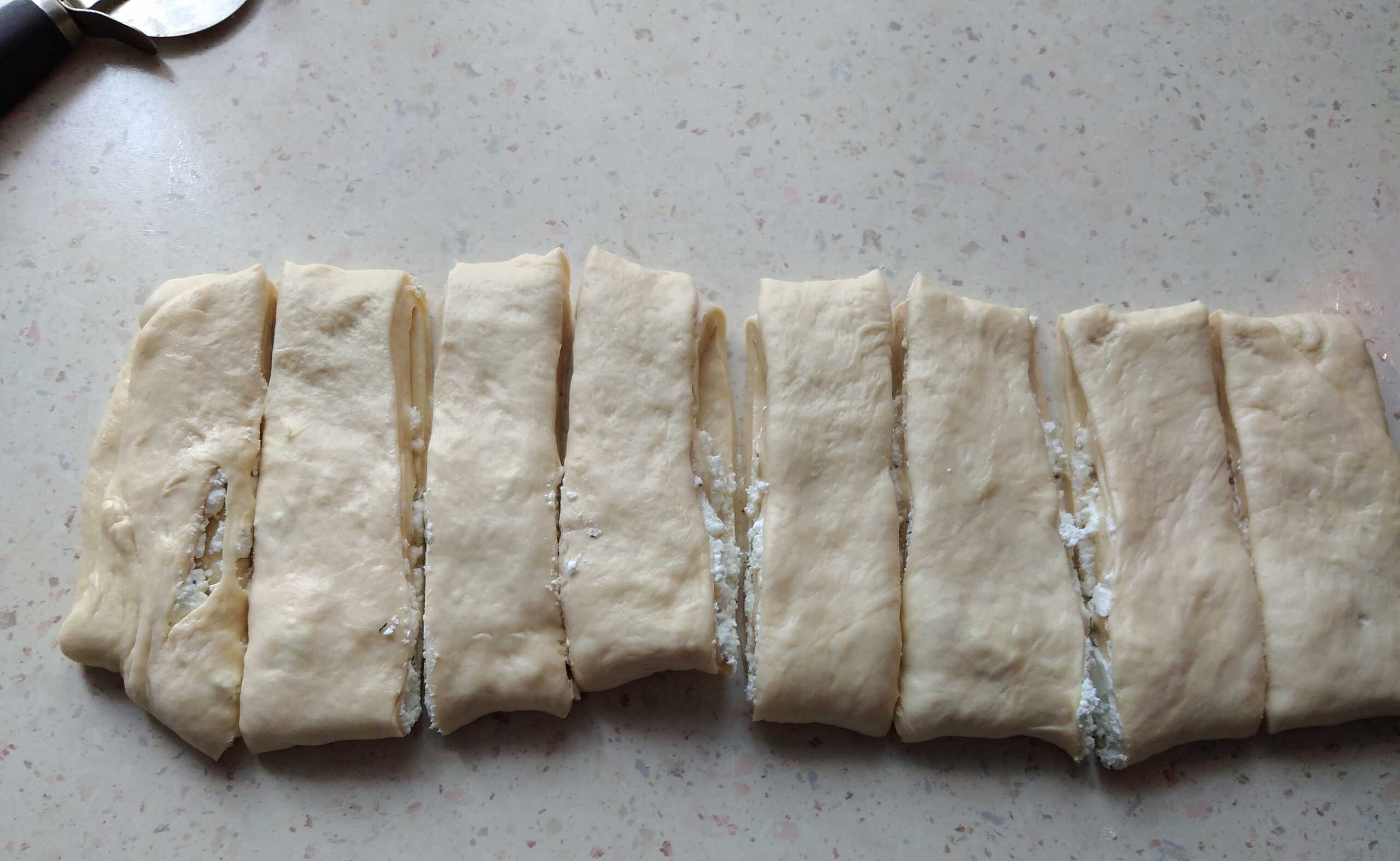 Το μέρος του φύλλου που δεν είναι πασπαλισμένο με τυρί διπλώνεται στη μέση χωρις να καλυπτει το τυρι.