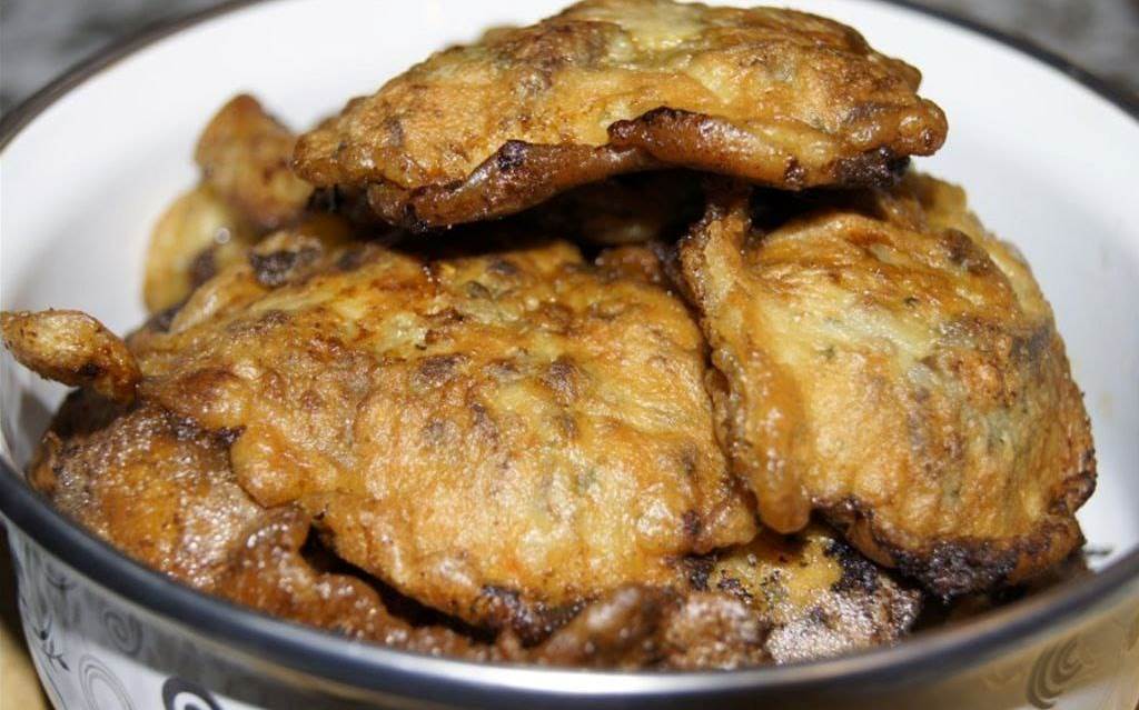 Ζεσταίνετε αρκετό λάδι σε ένα τηγάνι σε μέτρια φωτιά. Με ένα κουτάλι, παίρνετε κομμάτια συκωτιού μαζί με κουρκούτι και τα ρίχνετε στο τηγάνι.