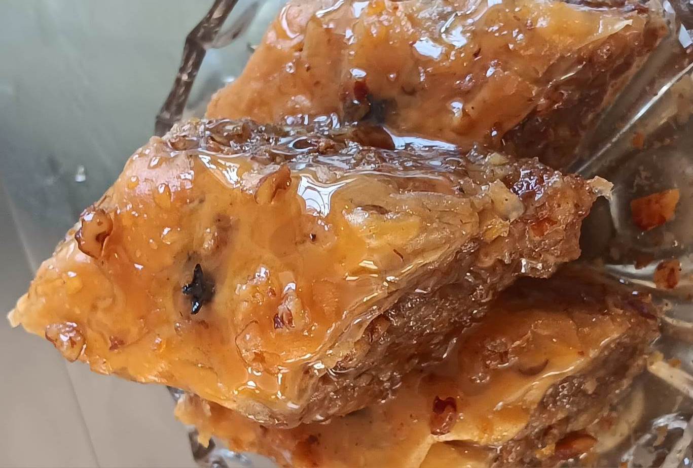 Χωρίστε τον μπακλαβά σε κομμάτια με ένα μαχαίρι και καρφώστε γαρύφαλλα στα κομμάτια.