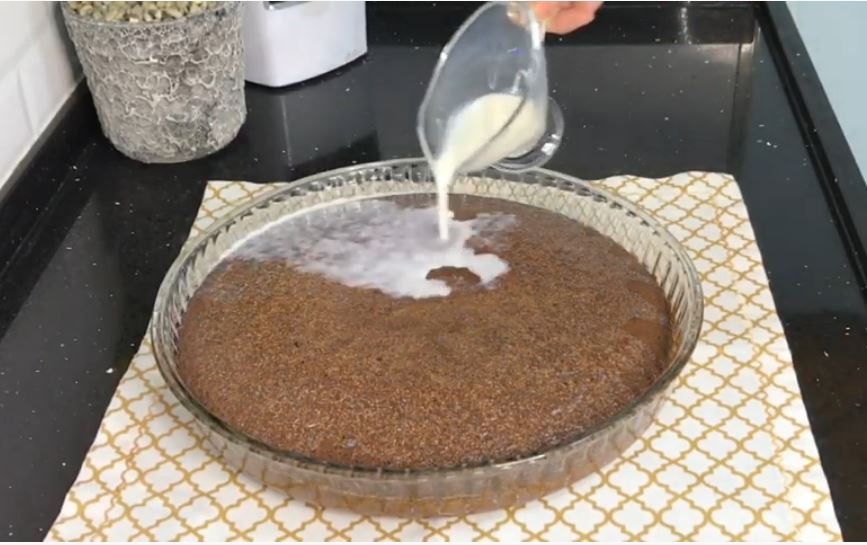 Αφού ψηθεί το κέικ, ας ρίξουμε το γάλα ελαφρά ζεστό.