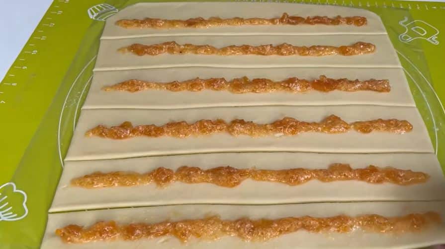 Ανακάτεψε σε ένα μπολάκι μαρμελάδα με αλευρι καρύδας και απλωσε όπως βλέπεις στην φωτό και κλειστο εννωνοντας τις ακρες