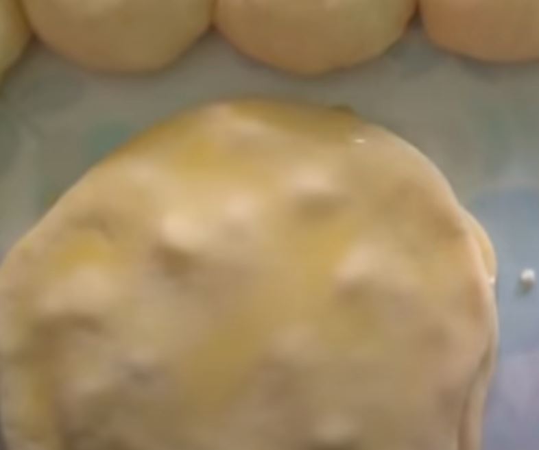 Μετά από 10-15 λεπτά, βάζουμε το ζυμάρι σε μία αλευρωμένη επιφάνειά ζυμώνουμε ξανά και χωρίζουμε τη ζύμη σε 10-12 μέρη