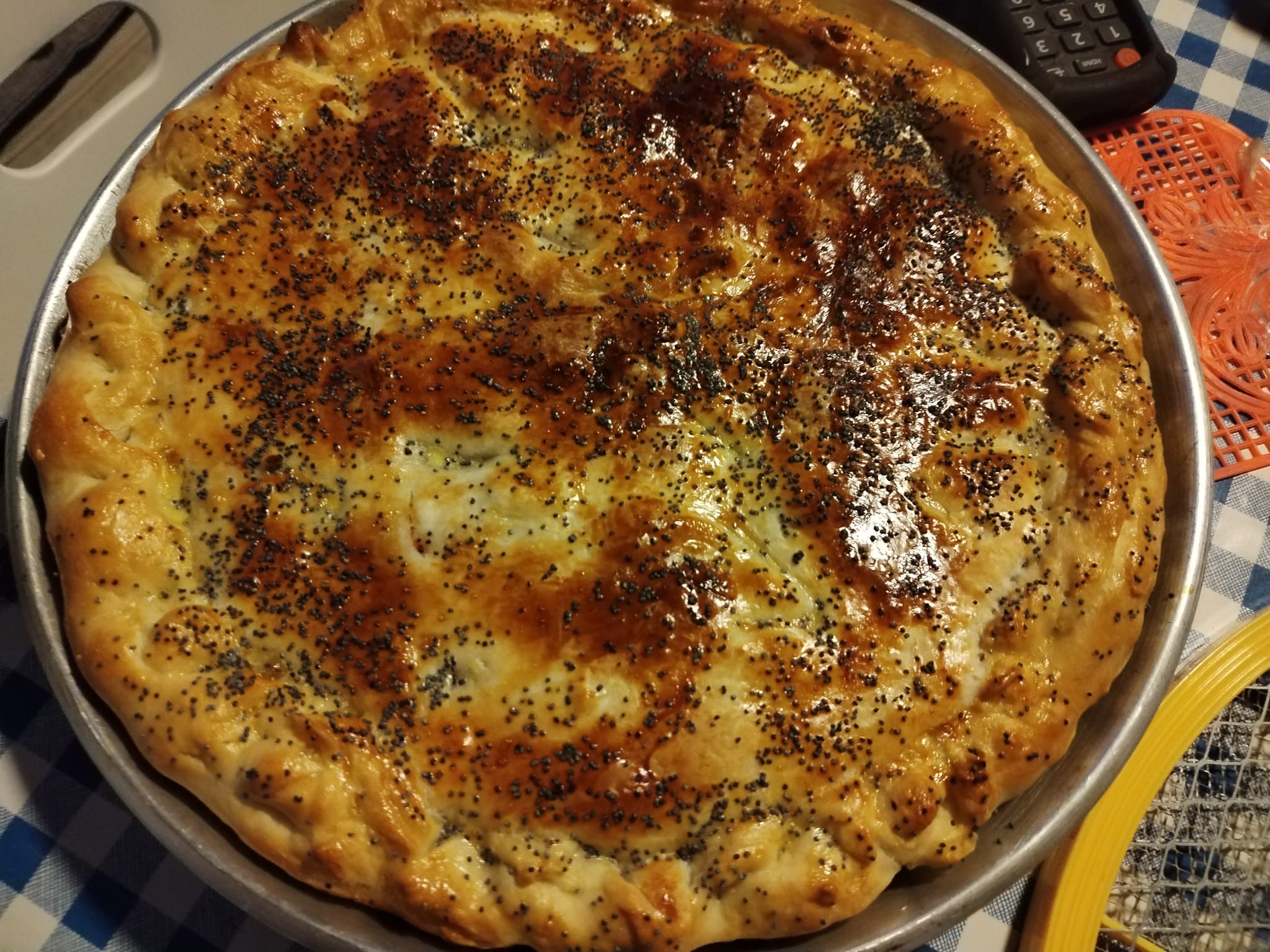 Ψήνουμε σε προθερμασμένο φούρνο στους 180°C για περίπου 30-40 λεπτά, μέχρι η σφολιάτα να ροδίσει και να γίνει τραγανήν ενδιάμεσα πασπάλισα και σπόρους μπορεί να βάλετε ότι θελετε.