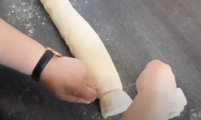 Κόβουμε την ζύμη με κοφτερό μαχαίρι ή οδοντικό νήμα