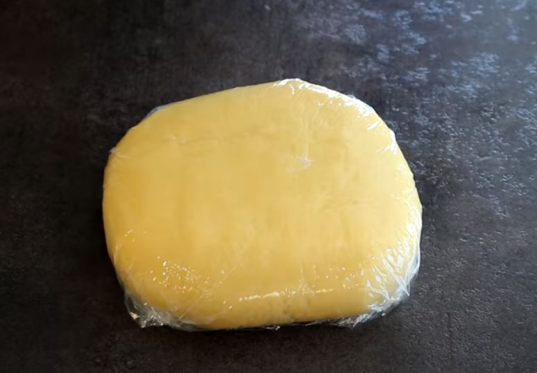 Βάζουμε την ζύμη τυλιγμένη σε μια μεμβράνη και θα την βάλετε στο ψυγείο για 1 30 λεπτά.