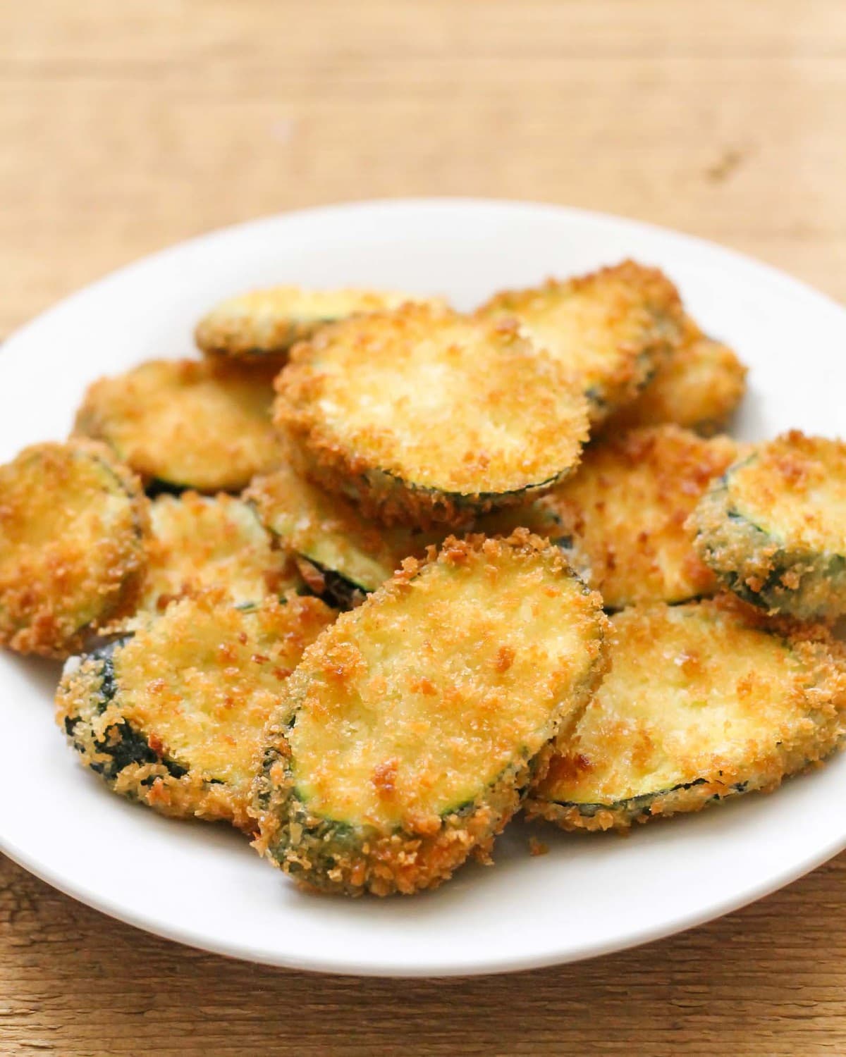 Κόψτε τα κολοκύθια σε διάφορους κύκλους. Ρίξτε 10-15 φέτες κολοκυθάκια σε ένα μπολ με γάλα.