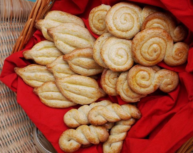 Αφού κρυώσει η ζύμη την χωρίζουμε σε δυο μέρη, ξανατυλίγουμε το ένα στην μεμβράνη και το βάζουμε στο ψυγείο. Ξεκινάμε να φτιάχνουμε τα κουλουράκια μας. Το κλασσικό σχέδιο είναι να κάνουμε ένα κορδόνι, να φέρουμε τις άκρες προς τα εμάς και να πλέξουμε μια πλεξίδα.