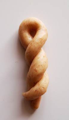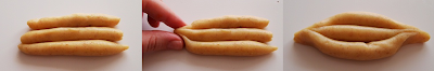 Το σχήμα για τα παραδοσιακά Σμυρνέικα κουλουράκια, το φτιάχνουμε βάζοντας παράλληλα 3 κορδονάκια και πιέζοντας τις άκρες τους να γίνουν σαν βαρκούλα.