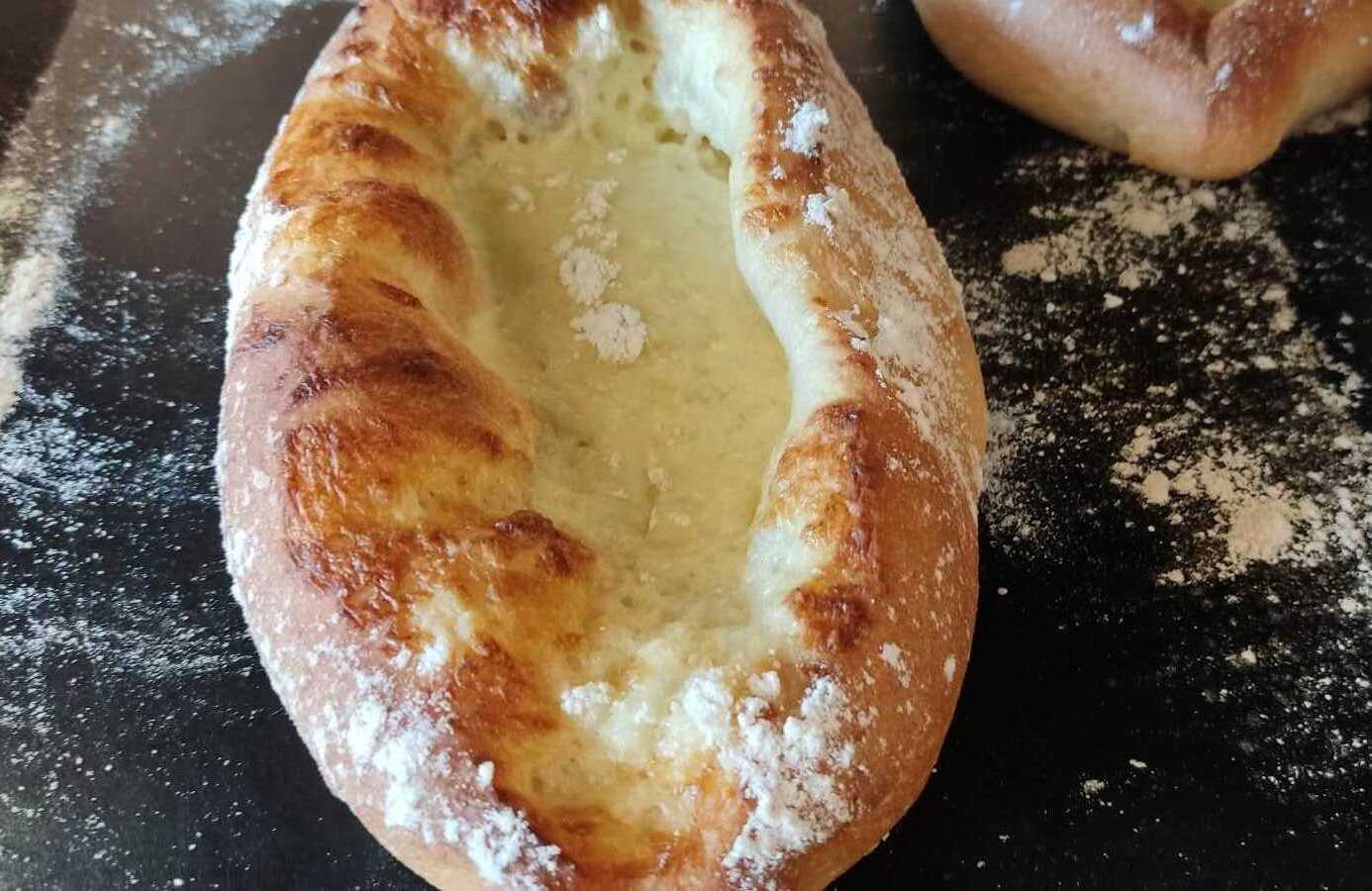 Ανοίγεις, ελάχιστα με τον πλάστη, για να την λεπτύνεις λίγο και σχηματίζεις 2 βαρκούλες διπλώνοντας λίγο ή τσιμπώντας τις άκρες, δίνοντας τους το κλασσικό σχήμα.