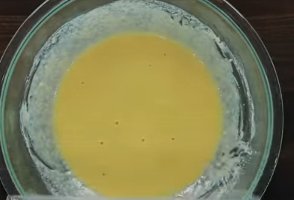 Προσθέστε ζεστό γάλα, 3 κουταλιές λιωμένο βούτυρο, 2 κρόκους αυγών και 1/2 κουταλάκι εκχύλισμα βανίλιας, και χτυπήστε δυνατά για να συνδυάσετε καλά.