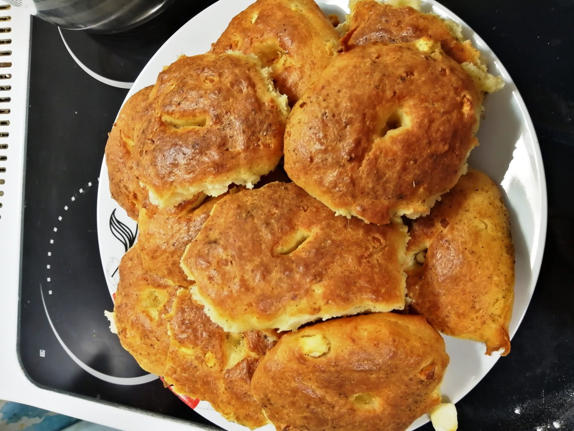 Χτυπάμε τα αυγά με γάλα και σόδα, προσθέτουμε το λάδι, το αλάτι, το τυρί και τέλος ρίχνουεμ το αλεύρι με το μπέικιν πάουντερ και ανακατευουμε καλα. Με ένα κουτάλι παίρνουμε από το μείγμα και τα ρίχνουμε σε ένα ταψί με χαρτί ψησίματος σε προθερμασμένο φούρνο στους 180 βαθμούς για 30 λεπτά να παρουν ωραίο χρώμα.