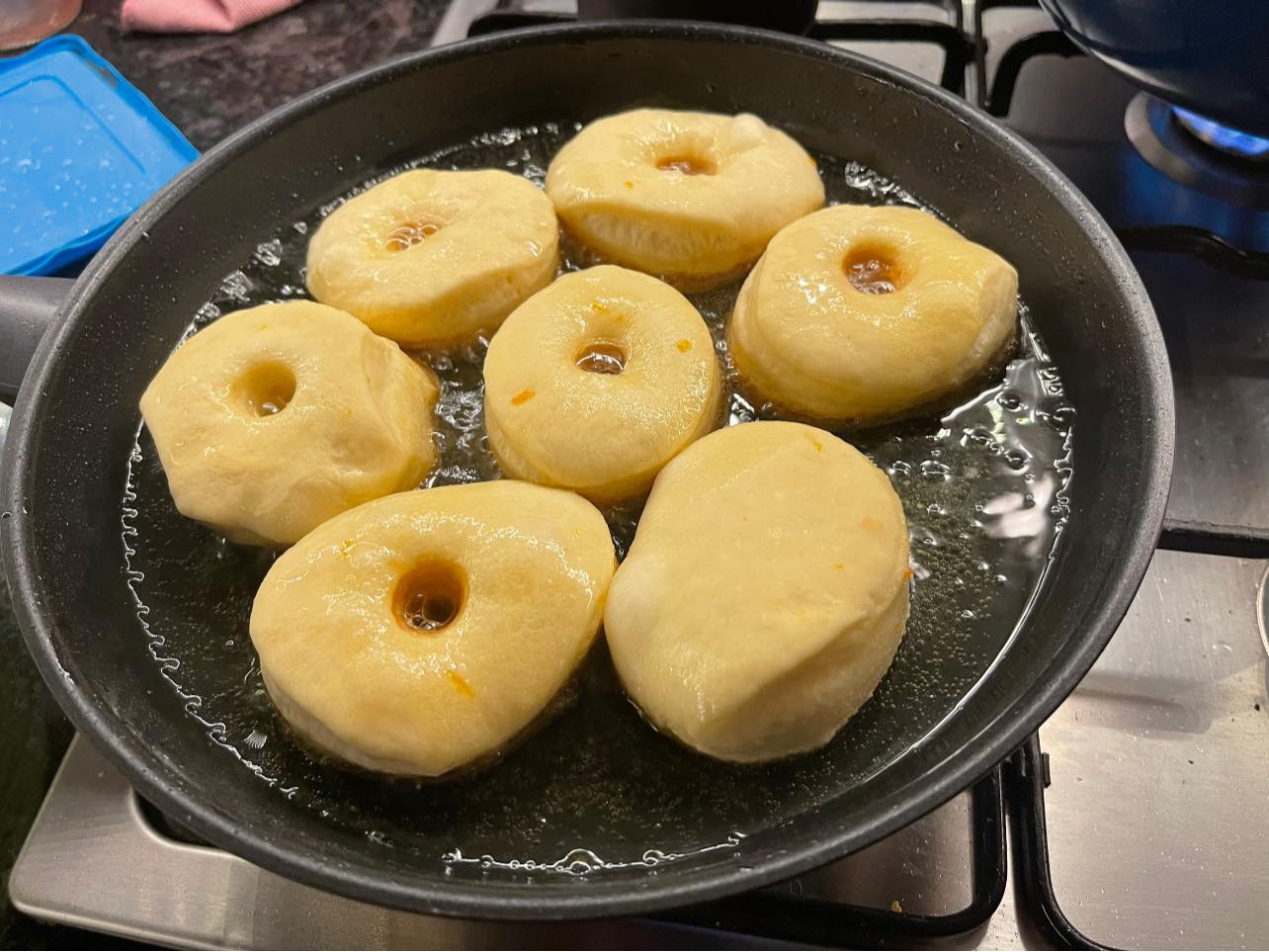 Οταν βγάλουμε τα ντονατς σε χαρτί και κρυώσουν τα γεμιζουμε με σοκολάτα λιωμένη ή κρέμα