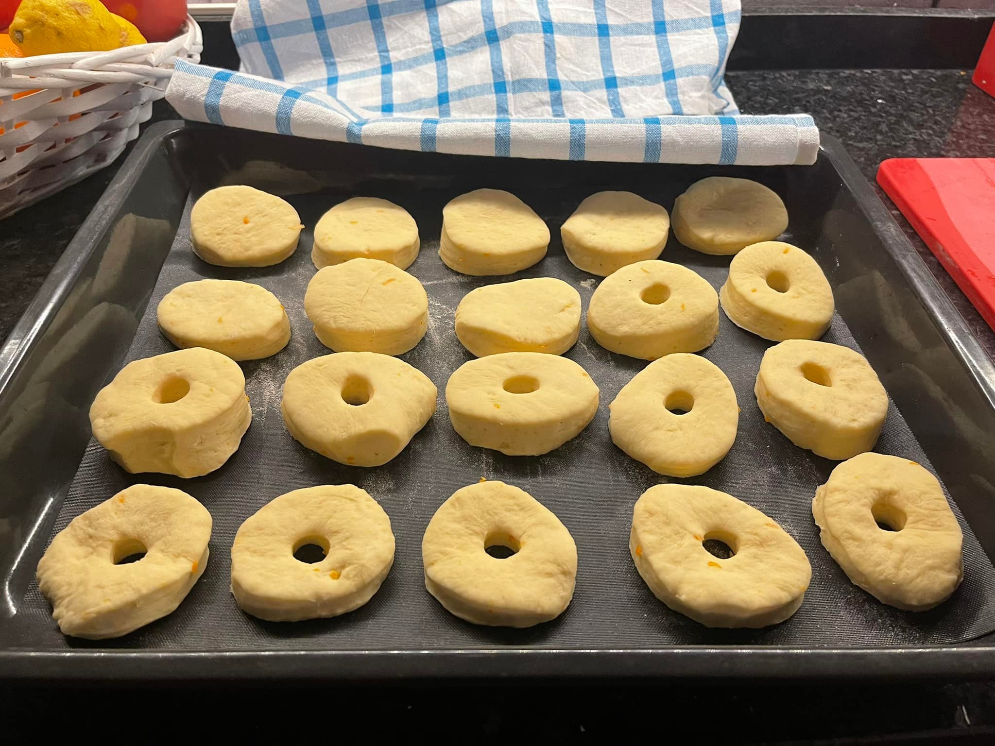 Στη συνέχεια ζυμώνουμε ξανά τη ζύμη για να βγει ο αέρας, απλώνουμε με το ρολό αφήνοντάς την περίπου 1 εκ. πάχος και φτιάχνουμε τους λουκουμάδες με την επιθυμητή φόρμα.
