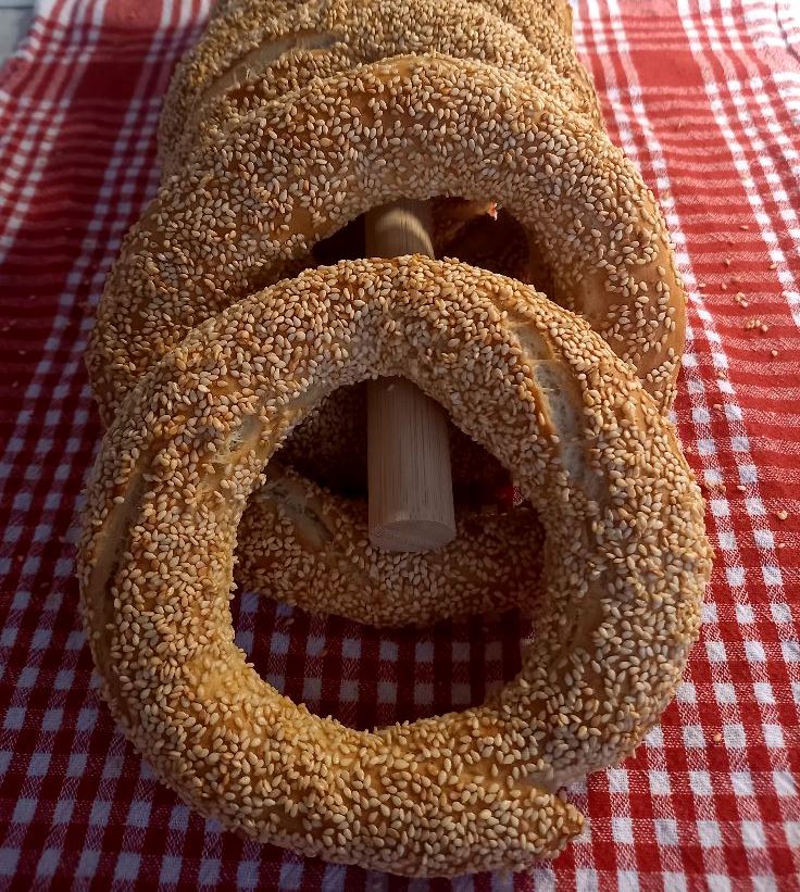 Ετοιμαζουμε την ζυμη μας διαλυωντας στο νερο την μαγια προσθετουμε τα υπολοιπα υλικα με τελευταιο το αλευρι.Η ζυμη ειναι αφρατη ευπλαστη και δεν κολλα στα χερια.Αφηνουμε να φουσκωσει.Πλαθουμε σε μπαλακια τα αφηνουμε σκεπασμενα με μεβρανη για 10 λεπτα.Πλαθουμε σε κορδωνια και τα κανουμε κυκλο.Τα βουταμε στο ζαχαρονερο και μετα στο σουσαμι.Ψηνουμε σε προθερμασμενο φουρνο στους 200 βαθμους στις αντιστασεις.😋😋