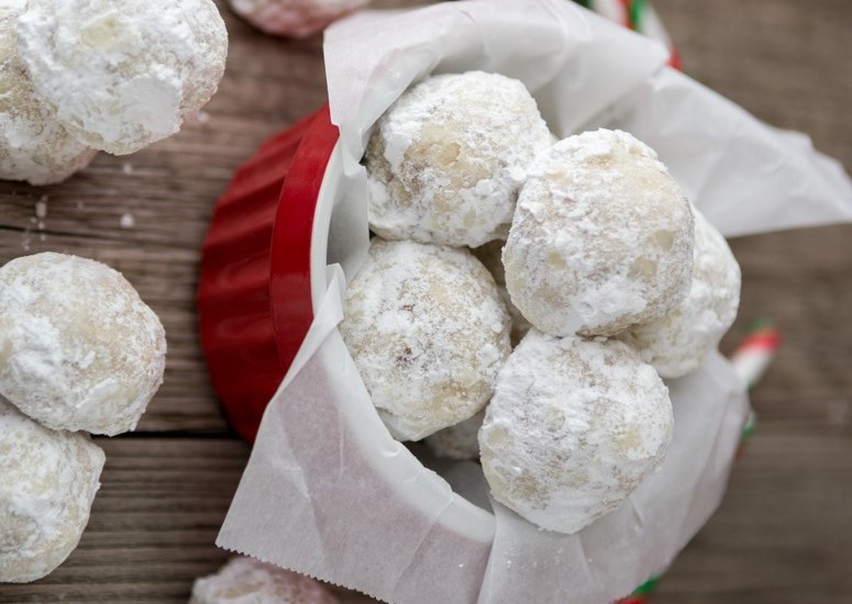 Ψήνουμε τα μπισκότα για 7-8 λεπτά έως ότου απο κάτω να είναι λίγο ελαφρώς καφέ. Αφαιρέστε από το φούρνο και κρυώστε τα για ένα λεπτό, μέχρι να πιάνονται. Γεμίστε ένα μικρό μπολ με ζάχαρη άχνη και τυλίξτε κάθε μπισκότο στη ζάχαρη μέχρι να επικαλυφθεί.