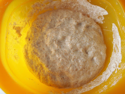 Σκεπάζουμε με πετσέτα και αφήνουμε το μείγμα να διπλασιαστεί για 30 λεπτά με μια ώρα ( Να ξέρετε γενικά για τις ζύμες με μαγιά όσο περισσότερο χρόνο αφήνετε στην μαγιά τόσο πιο νόστιμο αποτέλεσμα θα έχετε)