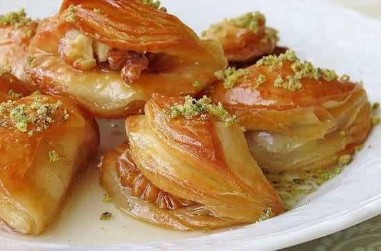 Αφήστε το γλυκό να απορροφήσει το σιρόπι (για 24 ώρες στην καλύτερη περίπτωση). Στη συνέχεια διακοσμήστε με φιστίκια Αιγίνης και σερβίρισμα.