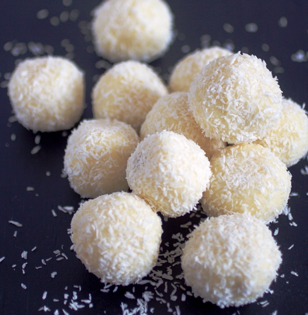 Βυθίστε και κυλήστε το κάθε τρουφάκι στην τριμμένη καρύδα για να καλυφθεί ολόκληρο.