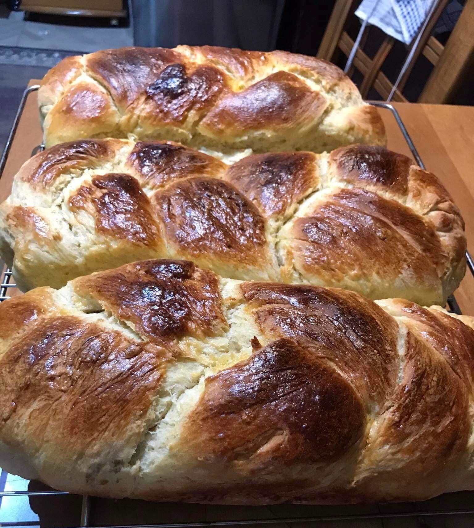 Αφού φουσκώσει η ζύμη, πλάσε τα τσουρέκια σου και τοποθέτησέ τα σε ταψί στρωμένο με λαδοκολα.