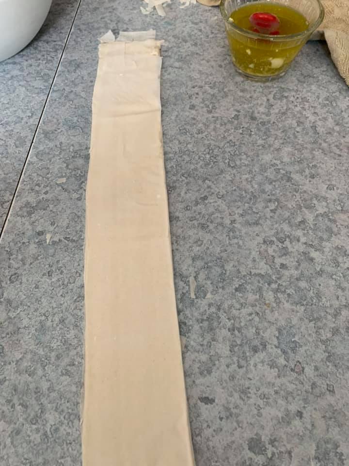 Κόψτε το φύλο σε 5 λωρίδες ίσες. Πάρτε μία λωρίδα και στη συνέχεια καλύψτε τα υπόλοιπα με μια υγρή πετσέτα.