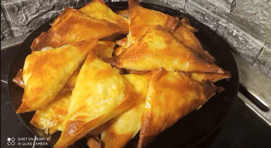 Βάζουμε μια κουταλιά της σούπας από τη γέμιση σε κάθε φύλλο και κλείνουμε σχηματίζοντας τρίγωνα ή ρολά. Τα σφραγίζουμε στο τέλος είτε με νερό ή με 3-4 πιτσιλιες από την κρεμα