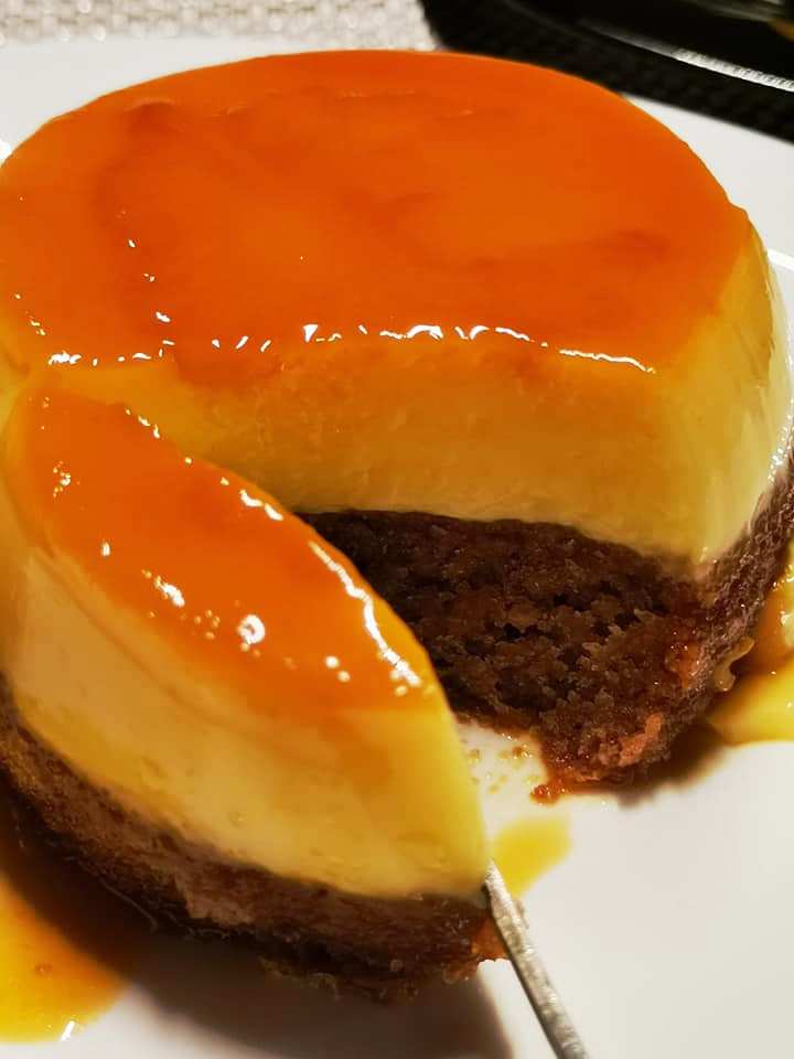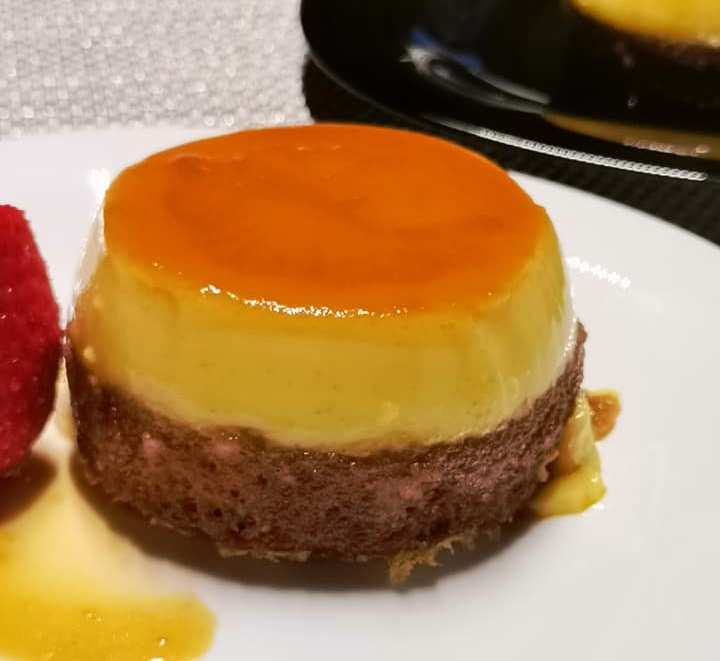 Προσθέτω στα μπολάκια (8 εκ) 1-2 κουταλιές της σούπας καραμέλα και αφήνω την καραμέλα να κρυώσει, έπειτα με μια κουτάλα προσθέτω το μείγμα της κρέμας καραμέλας και τέλος με ένα κουτάλι προσθέτω 1 κουταλιά της σούπας μείγμα για την βάση!