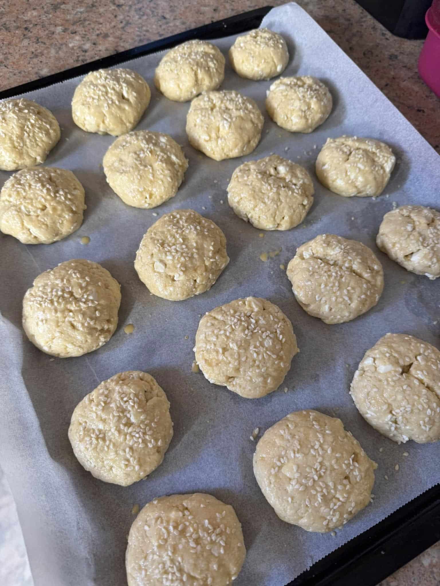 Έκανα μπαλίτσες ,τις πέρασα με αυγό και γάλα,λίγο σουσάμι και ψήσιμο στους 190 αντιστάσεις για 20 λεπτά περίπου (ανάλογα και τον φούρνο πάντα)