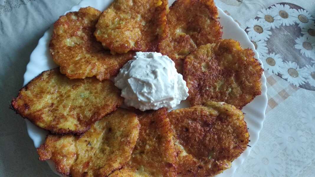 Με ένα κουτάλι, παίρνουμε μια ποσότητα από τη ζύμη και τη ρίχνουμε στο τηγάνι. Ισιώνουμε τη ζύμη με το πίσω μέρος του κουταλιού, σχηματίζοντας λεπτές τηγανίτες διαμέτρου περίπου 10 εκατοστών.
