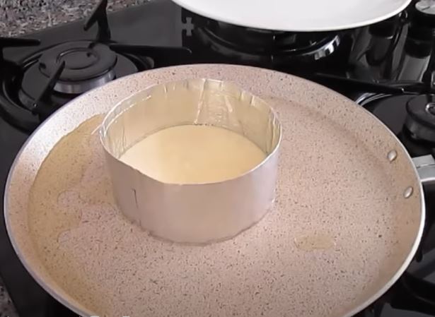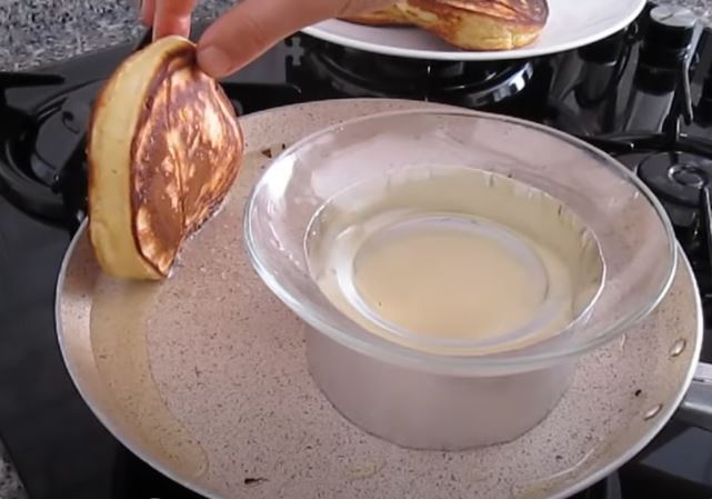 Βάλτε ένα ρηχό τηγάνι στην φωτιά και βουτυρώστε, πάρτε ένα καλούπι (μπορείτε και να το φτιάξετε με αλουμινόχαρτο) αλλοιψτε το με βούτυρο στο πλαϊνά, και ρίξτε μέσα 2,5 κουταλιές της σούπας ζύμη, καλύψτε από πάνω με ένα πιατάκι του γλυκού και τηγανίζετε μέχρι να σφίξει η ζύμη και αφαιρέστε το καλούπι.