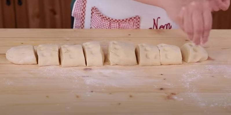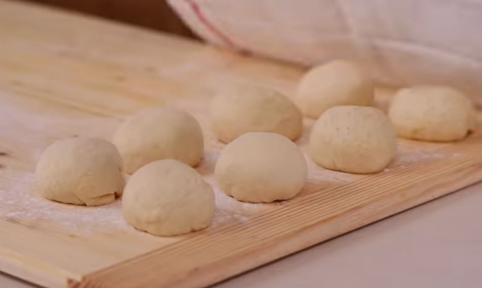 Μετά τον απαραίτητο χρόνο για να διπλασιαστεί ο όγκος, πάρτε ξανά τη ζύμη, σχηματίστε ένα καρβέλι, χωρίστε το σε 8 κομμάτια και σχηματίστε 8 μπάλες.